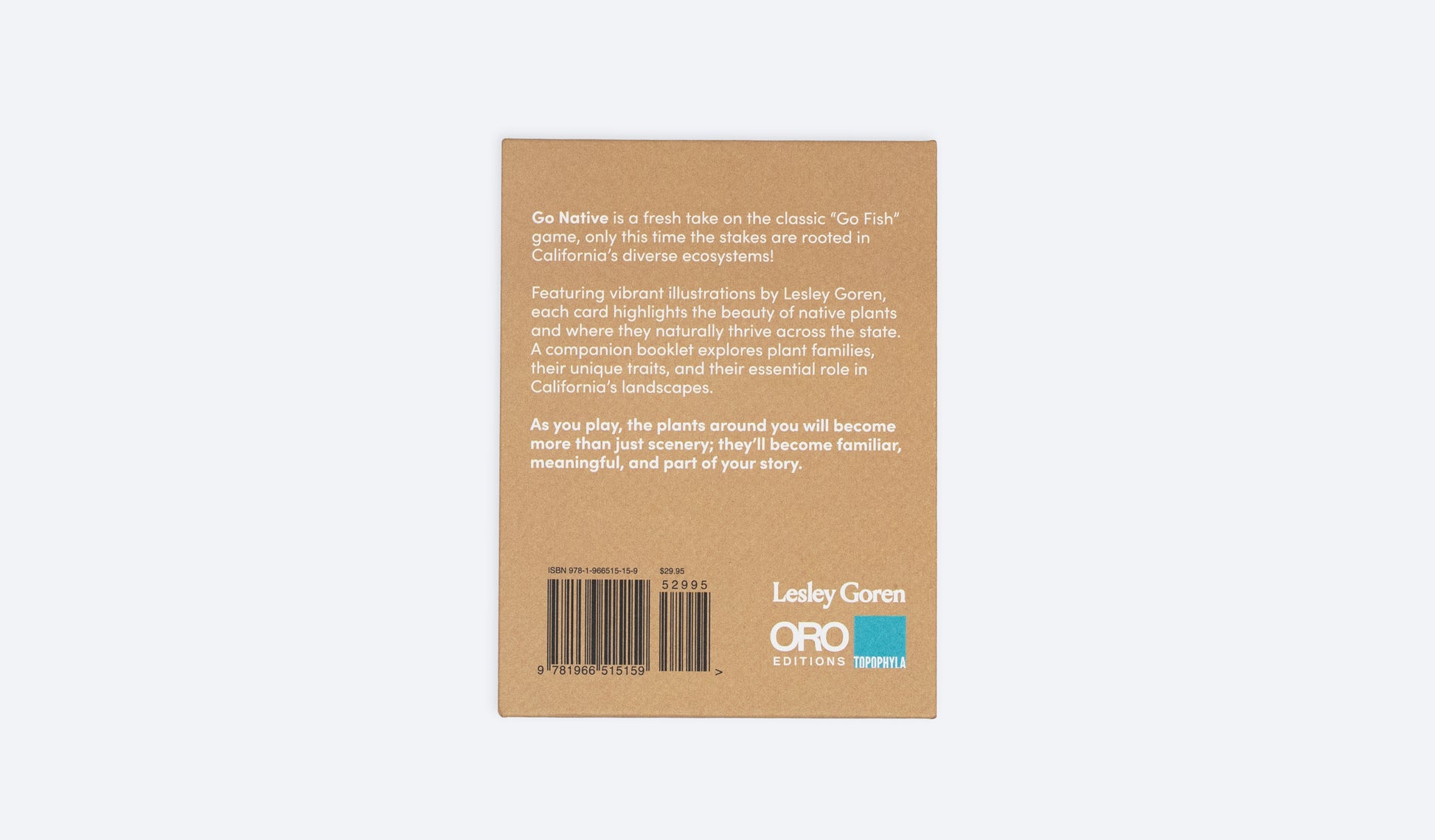 Go Native is a Go Fish card game that celebrates California’s native plants and fosters ecological awareness. Each card features vibrant illustrations by Lesley Goren, showcasing the beauty and uniqueness of these plants, along with their scientific and common names. The game is accompanied by a booklet offering insights into plant families, their connections, and their essential role in California’s culture, history, and ecosystems.